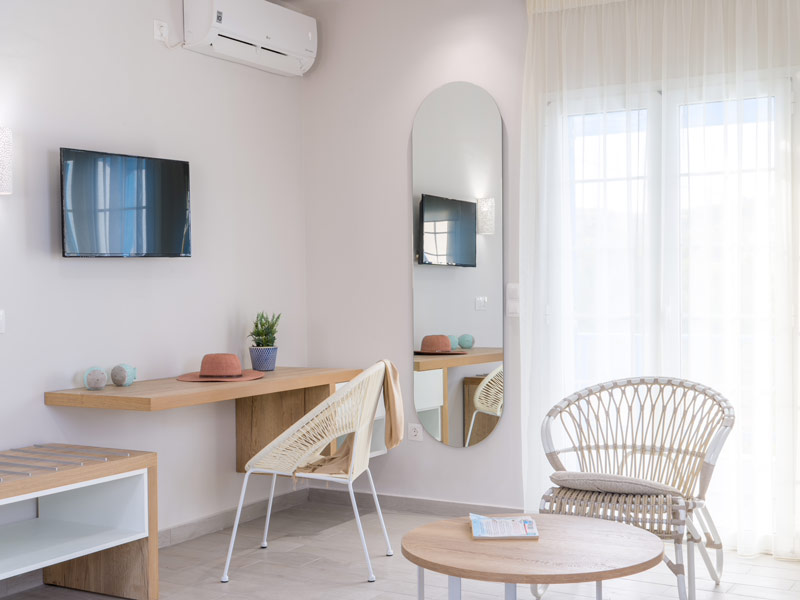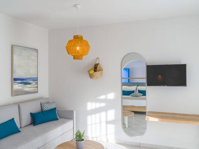 “Romantica Apartments” found at a very lovely location at Agia Pelagia, on Kythira island, with the backdrop of the mountain, and a beautiful view of the sea. It is built at an exceptionally quiet location according to the traditional architecture of the area, catering to the modern needs of hospitality and with the comfort of an excellently equipped tourist unit. It is only 100m from the beach of Agia Pelagia, 26km from Diakofti (the port of Kythira) and 17km from the airport. Romantica Apartments offers its guests, studios, apartments with one or two bedrooms, one junior suite, with big verandas and balconies which have a view of the sea, the mountain and the pool. Each unit is equipped with attention to every detail. The soft colors of the interior décor will help you to relax and get away from your daily monotony, in a friendly, family atmosphere. Romantica Apartments also features a reception area, pool, sauna, breakfast (from 8:30am to 10:30pm), Internet service, elevator, free bicycles, and gym. All major credit cards are accepted. At night in the discreetly lit pool area, you can have your drink or try an exotic cocktail.